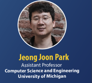 Jeong Joon (JJ) Park is an assistant professor in CSE. He is broadly interested in computer vision, graphics, and artificial intelligence. His current research focus is on realistic 3D/4D content generation using physical and neural representations: generations for large-scale, dynamic, and interactive scenes are primary targets. His group explores 3D vision, graphics and machine learning, and their applications to robotics, medical imaging, and scientific problems. Before coming to Michigan, he was a postdoctoral researcher at Stanford University and finished his Ph.D. at U of Washington, Seattle.