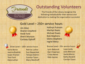 We celebrate our Friends through a Recognition Program that acknowledges those who have donated their time through levels of volunteer hours. Friends contributing 50 hours receive bronze pins, at 100 hours volunteers receive silver pins and at the 250 hour level, volunteers receive gold pins, noting their service. Recipients are sent a commendation letter from the President of the Friends with their pins. Since the inception of the program, individual Friends achievements are highlighted below.