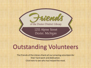 The Friends of the Dexter District Library applaud all our volunteers for their efforts in support of the Library. We have two different programs recognizing Friends’ efforts.